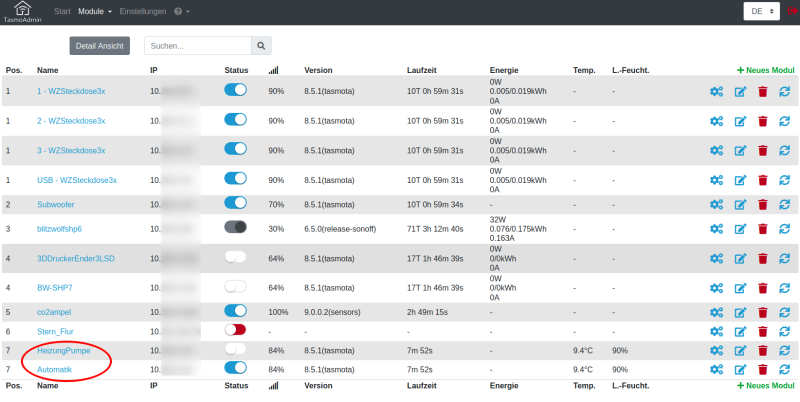 Per Default habe die Relais einheitliche Namen. Dabei verliert man z.B. TasmoAdmin oder MQTT schnell die Übersicht. Daher kann man „Freundliche“ Name für jedes Relai vergeben.